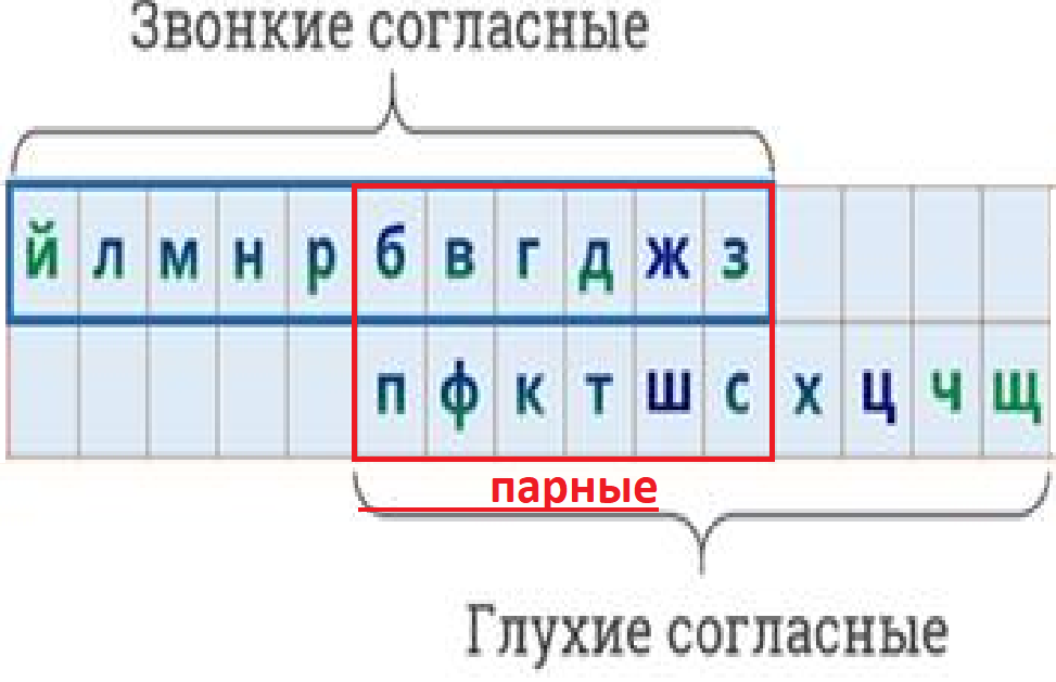 В-Ф, Б-П, З-С, Д-Т, Г-К, Ж-Ш