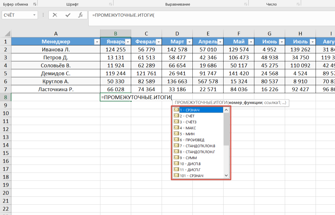 Как в Excel посчитать сумму только по видимым ячейкам
