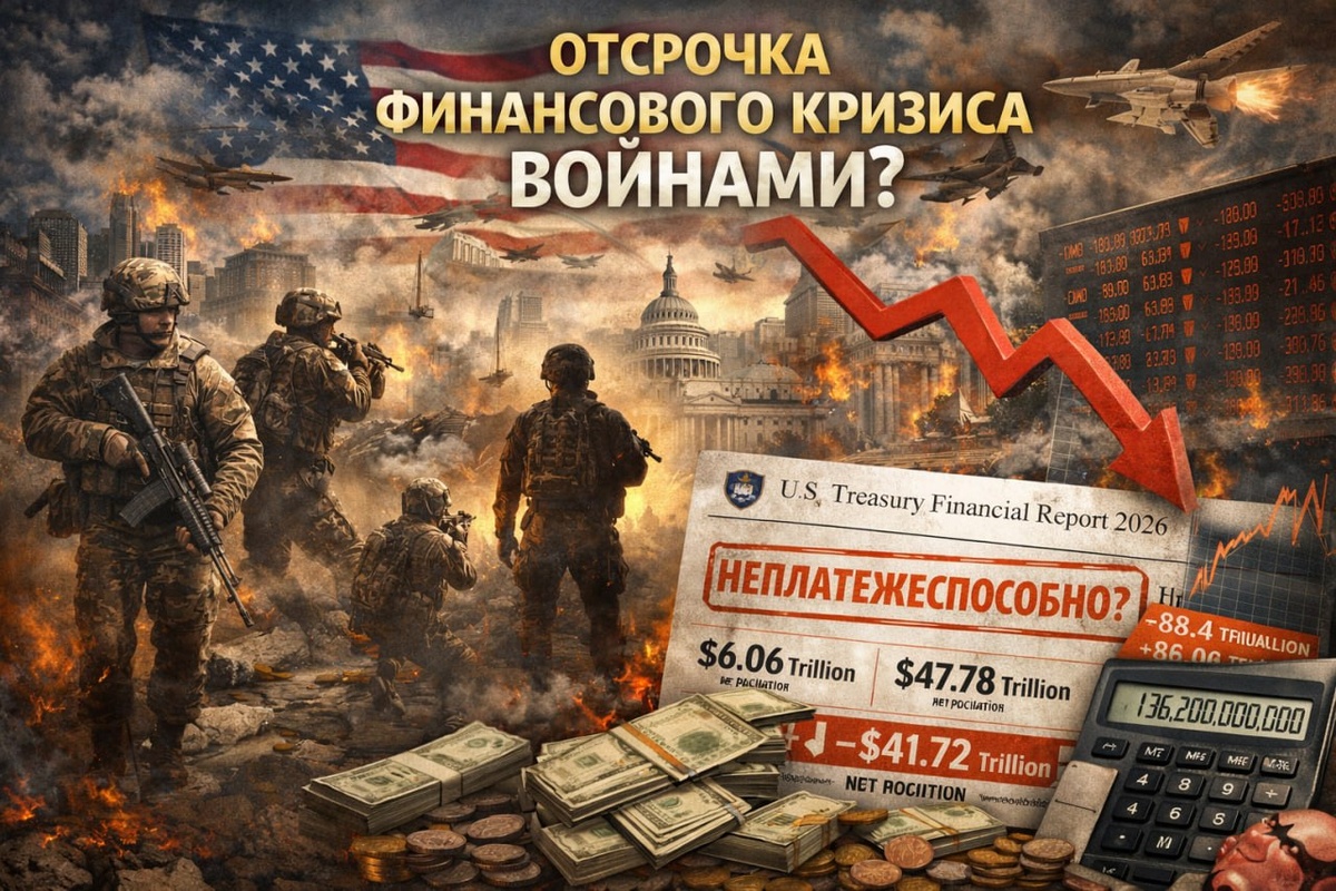 Войны — попытка выиграть время Последний финансовый отчёт правительства США за 2025 финансовый год показывает крайне тревожную динамику, которая практически не обсуждается в публичном поле. Согласно консолидированной отчётности Казначейства, активы федерального правительства составляют около 6,06 трлн долларов США, тогда как обязательства достигли 47,78 трлн долларов США. Отрицательная чистая позиция превысила 41,7 трлн долларов США и за год ухудшилась более чем на 2 трлн. Основной рост связан с увеличением государственного долга, процентных выплат и обязательств по социальным программам для военных, федеральных служащих и ветеранов. Отдельно учитываются долгосрочные обязательства по социальному обеспечению и медицинским программам. На горизонте 75 лет их объём оценивается примерно в 88,4 трлн долларов США против 78,3 трлн годом ранее. Если учитывать их вместе с официальными обязательствами, совокупная нагрузка превышает 136 трлн долларов США, что кратно больше годового ВВП страны. Э