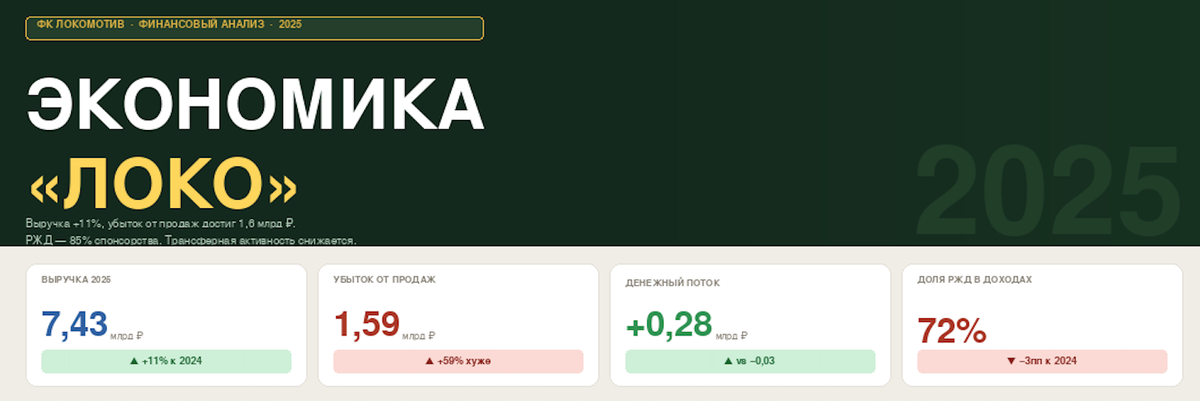 В 2025 году клуб дополнительно получил около 1,1 млрд рублей авансов от РЖД, доведя их общий объём до 2,1 млрд рублей. По сути, это деньги из контракта 2026 года, которые были использованы для финансирования расходов 2025-го.