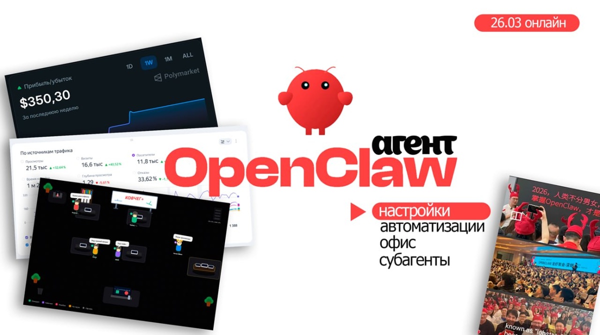 Это третье занятие на канале по OpenClaw, на этом цикл занятий по этой теме пока заканчиваем дальше буду смотреть по обновлениям функционала. Ассистент на OpenClaw очень хайповая тема, в Китае так она стала совсем вирусной, в России пока хайп не достиг уровня, но продукт хорош, но со своими минусами и косяками которые нужно убирать собственноручно. Вход в агентскую систему крайне простой, потому набирает большую популярность даже у людей которые далеки были от нейросейтей автоматизаций и агентов. По сути из коробки вы можете делать что душе угодно, что вызывает чувство всевозможности. По занятию: Разберёмся как настраивать, панель настройки, создание субагентов, общая память, контроль панель (кастомная), возможности автоматизации и cron задач. Главное: Постараюсь ответить на вопросы, зачем, для чего, почему, где использовать, можно ли заработать, и сколько стоит...🥸 Занятие будет проходить на закрытом канале, если интересна данная тема - приглашаю присоединиться. В клубе уже 140 в