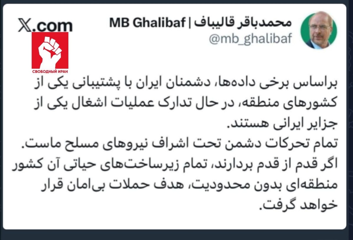 ⚠️ Спикер парламента Ирана Мохаммад Багер Галибаф заявил, что противники Тегерана при поддержке одной из стран региона могут готовить операцию против одного из иранских островов. По его словам, иранские вооруженные силы держат ситуацию под контролем, а в случае любого шага по инфраструктуре этой страны последуют непрерывные удары. Заявление прозвучало на фоне сообщений о возможной попытке проникновения 🇺🇸американских или 🇮🇱израильских сил на территорию Ирана. Подпишитесь на канал