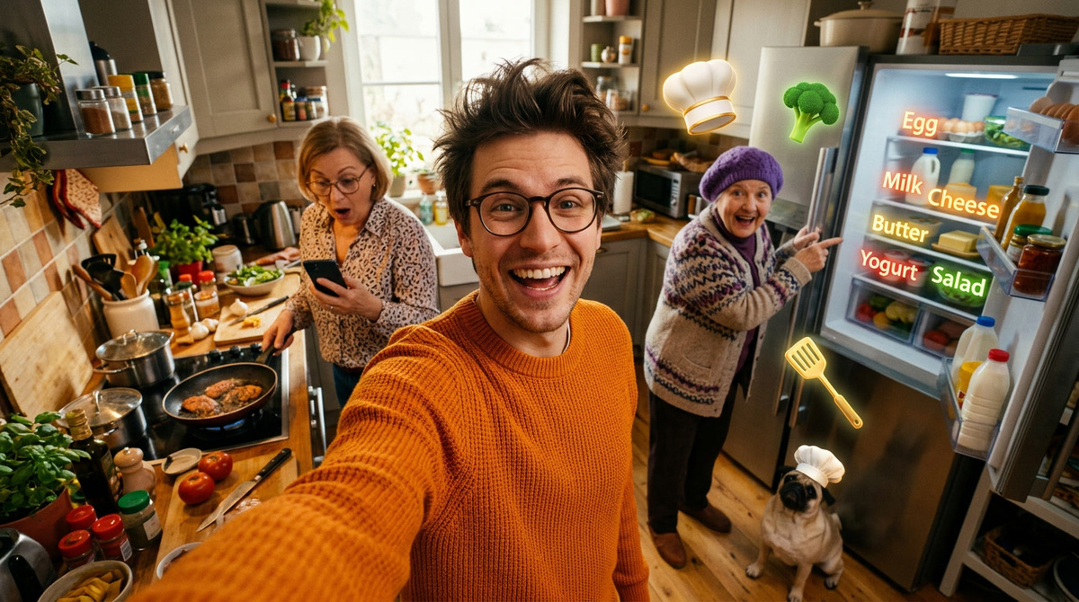 Зинаида Павловна с азартом прицелилась телефоном в холодильник. Нейросеть на экране тут же начала обводить продукты цветными кружочками: «Сметана — свежая», «Гречка — 200 грамм», «Лук — 1 шт.».