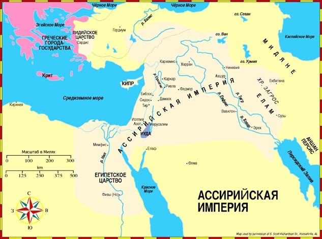 Ассирия располагалась в северной части современного Ирака, вдоль реки Тигр и к востоку от подножия хребта Загрос. Ассирийцев обычно считают жестокими завоевателями. Этот образ сложился частично благодаря ветхозаветным рассказам об их войнах с Израилем. Между 1500 и 1100 гг. до н.э. Ассирия расширила свои границы на запад до реки Евфрат и стала ведущим государством на Ближнем Востоке. Цари-завоеватели Ашшурнасирпал II (883–859 до н.э.) и Салманасар III (858–824 до н.э.) захватили многие города и сделали их царей своими вассалами. Тиглатпаласар III (745–727 до н.э.; библ. Феглаффелласар) первым установил твердую организацию власти через систему начальников провинций. Обычным способом предотвращения сопротивления со стороны покоренных народов была депортация большого числа жителей в другие части империи и поселение на их место чужестранцев издалека. Это произошло в Израиле, когда ассирийцы захватили Самарию (4 Цар. 17:6, 24; см. 18:31, 32). Со временем империя слишком разрослась, включив