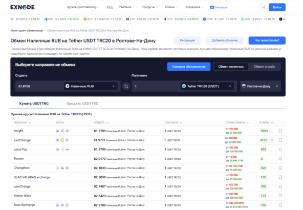 Платформа мониторинга криптообменников Ростов на Дону на Exnode
