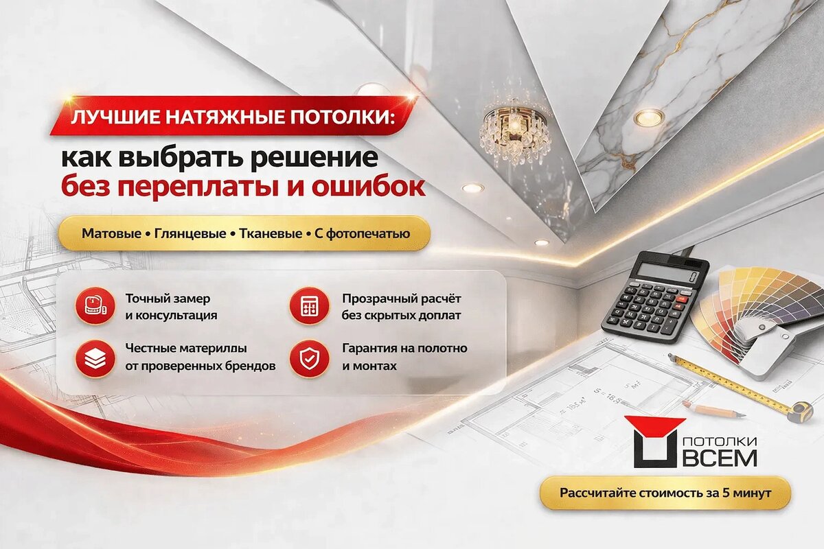 простая: лучший натяжной потолок — это потолок, который подходит именно вашему помещению и не создает проблем после монтажа. Все остальное