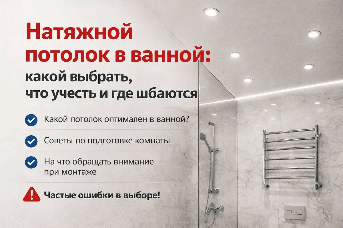 Натяжной потолок в ванной: какой выбрать, что учесть и где чаще всего ошибаются