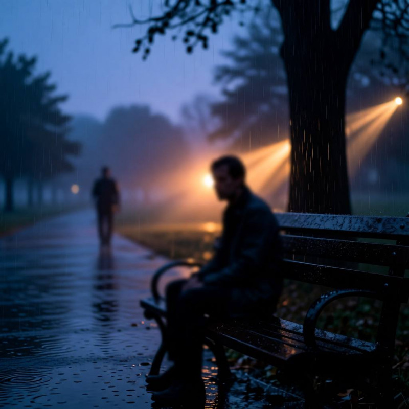 У самых ворот оглянулся. Старик так и сидел на скамейке, глядя куда-то в сторону свежей могилы, где группка людей всё ещё топталась под накрапывающим дождём.
