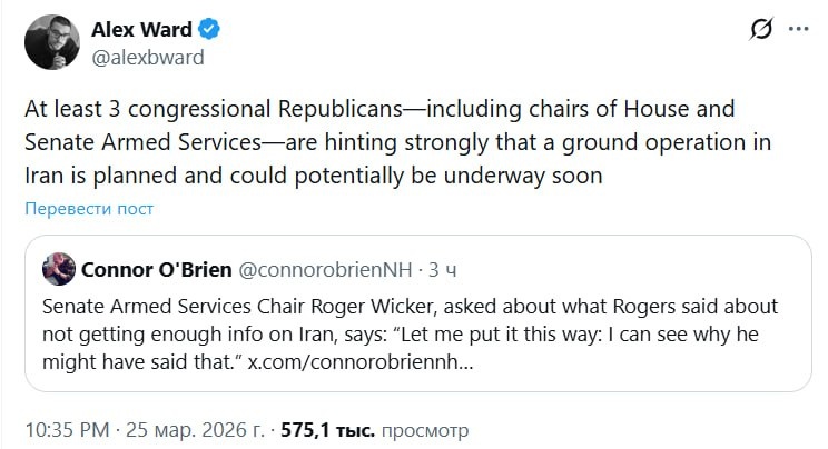 Наземная операция в Иране планируется и может начаться в ближайшее время, пишет репортер The Wall Street Journal Алекс Уорд
