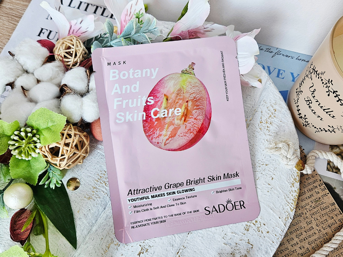 Давно что-то я не покупала масочки, но последний раз накупила новых масок и тех, что мне понравились. Маски Unicorns Approve с огурцом и с гранатом беру частенько, мне кстати такую в Летуале дали в подарок недавно, за бонусы от ТЦ Мега. Еще мне очень понравилась тыквенная маска от Tenzero. На этот раз маска от бренда Sadoer, который заполонил прилавки Фикс Прайсов и маркетплейсы. И я не осталась в стороне, взяла на пробу одну маску. У пакета приятный розовый цвет, виноградинка в разрезе и, предполагалось, что виноградная маска будет хорошей и выполнит заявленные качества. Но маска не оправдала ожиданий. ❕️Маска для лица обладает укрепляющим, питающим и восстанавливающим эффектом. Придает коже сияние и эластичность. Для удобного открытия есть засечки, но из-за сильной плотности пакета ровно разорвать не получилось. Кстати, там еще вешалочка есть, ее лучше удалить, так как она прямо на пути разрыва. Я сначала забыла и уперлась в нее. Внутри тканевая маска, которая идет на подложке.
