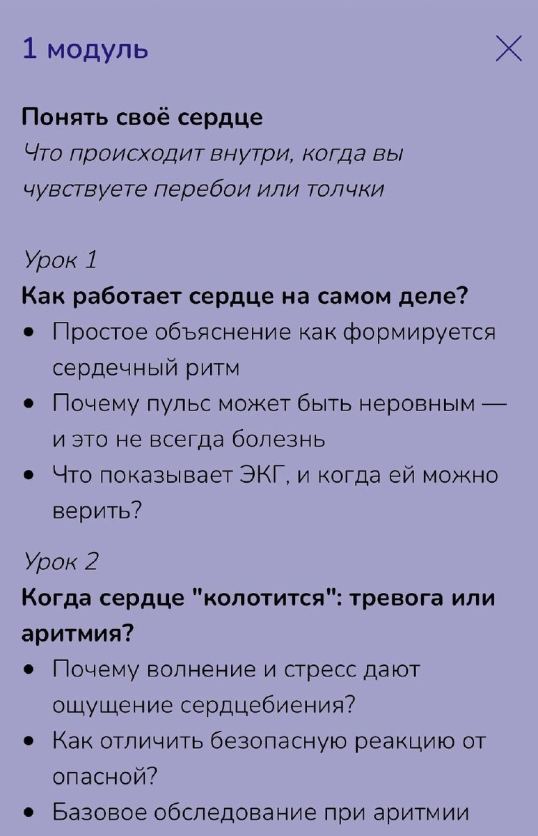 ” 🔍 Если бы мне нужно было выбрать самый недооценённый модуль КардиоКлуба, я бы выбрал Модуль 1 - “Понять своё сердце”. Почему? Потому что у 80% людей проблема не в том, что “не хватает лекарств”. Проблема в том, что нет понимания, что происходит. Что даёт 1 модуль ✅ вы наконец понимаете, как работает сердце на самом деле ✅ вы начинаете различать: “нормальная реакция” vs “повод обследоваться” ✅ вы узнаёте, когда ЭКГ можно доверять, а когда нужна другая диагностика ✅ вы получаете базовый алгоритм: что делать, если: • “колотится” • “перебои” • “страшно” • “непонятно” И главный эффект Когда появляется понимание - уходит половина тревоги. А вместе с тревогой часто уменьшается и яркость симптомов. Для предзаписи на максимально лучших условиях: 👉 Ссылка на предзапись в телеграмме: @CardioClubformsbot 👉 Ссылка на предзапись через Яндекс: https://forms.yandex.ru/u/69467e0990fa7b1a9e40d630