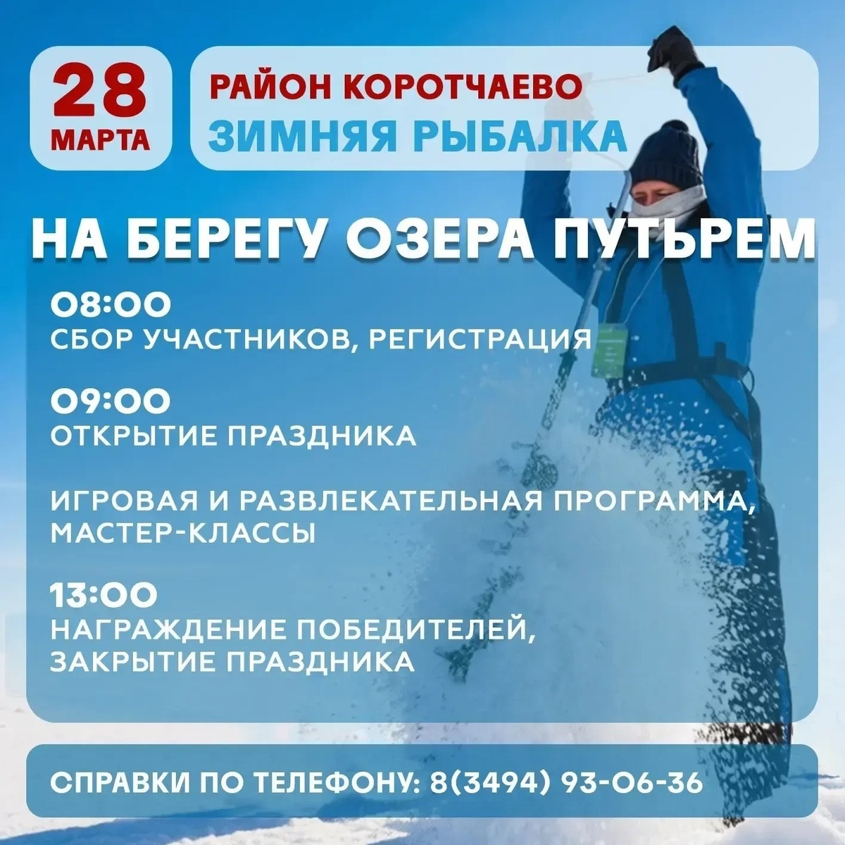 В Коротчаево 28 марта на озере Путьрем состоятся соревнования по зимней рыбалке