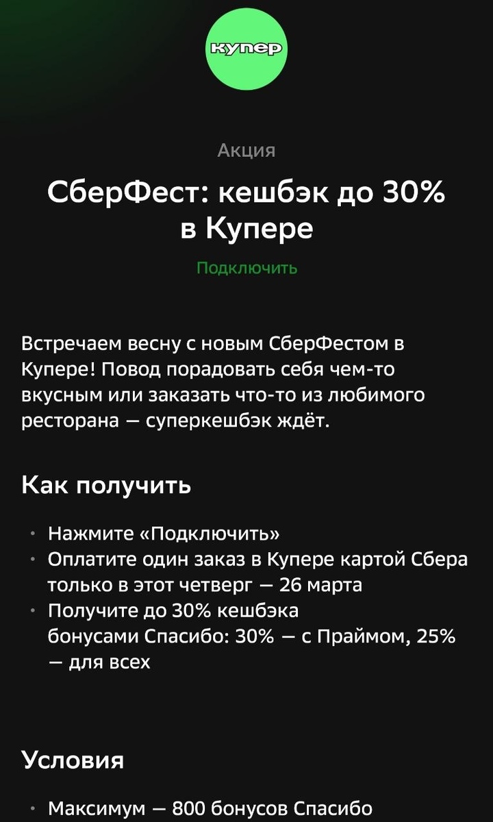 Π‘Π±Π΅ΡΡΠ΅ΡΡ (ΡΠ°Π·Π΄Π΅Π» Π΄Π»Ρ ΠΆΠΈΠ·Π½ΠΈ - Π½Π°ΠΉΡΠΈ ΠΏΡΠ΅Π΄Π»ΠΎΠΆΠ΅Π½ΠΈΠ΅ - ΠΏΠΎΠ΄ΠΊΠ»ΡΡΠΈΡΡ): ΠΊΠ΅ΡΠ±Π΅ΠΊ 30% Π΄Π»Ρ ΠΏΠΎΠ΄ΠΏΠΈΡΡΠΈΠΊΠΎΠ² ΡΠ±Π΅ΡΠΏΡΠ°ΠΉΠΌΠ° ΠΈΠ»ΠΈ ΡΠ±Π΅ΡΠΏΡΠ΅ΠΌΡΠ΅ΡΠ°, Π½ΠΎ Π½Π΅ Π±ΠΎΠ»Π΅Π΅ 800 Π±ΠΎΠ½ΡΡΠΎΠ² (Π΅ΡΠ»ΠΈ Π΅ΡΡΡ ΠΏΡΠΎΠΌΠΎΠΊΠΎΠ΄Ρ - Π±Π΅Π· ΠΏΡΠΎΠ±Π»Π΅ΠΌ ΠΈΡΠΏΠΎΠ»ΡΠ·ΡΠ΅ΠΌ ΡΠ²Π΅ΡΡ