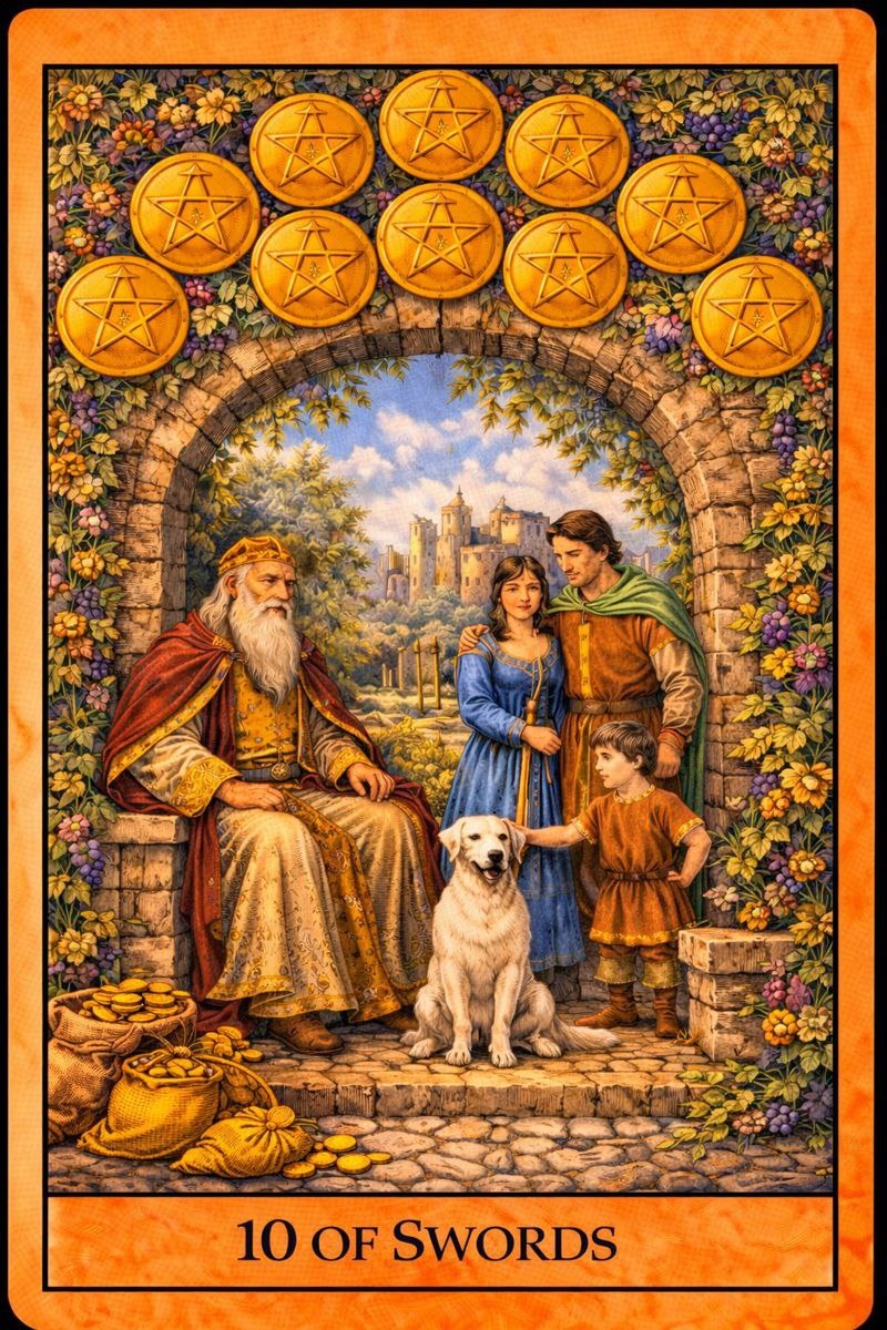 Дата: 26.03.2026 Общее описание дня: Десятка Пентаклей — день устойчивости, завершённости и долгосрочной опоры. Это про безопасность, результаты, которые можно удержать, и ощущение прочного фундамента — в семье, делах, финансах или ценностях. Как использовать этот день: · Зафиксируйте достигнутое. · Опирайтесь на то, что уже выстроено. · Думайте стратегически и на перспективу. · Укрепляйте то, что даёт чувство надёжности. Мантра на день: «Я нахожусь на прочной основе и ценю свою устойчивость.» Связь с Влюблёнными (25.03.2026): После дня выбора Десятка Пентаклей показывает его результат. Принятое решение сегодня отражается в ощущении стабильности и понимании, на что вы готовы опереться в долгую. 🪙