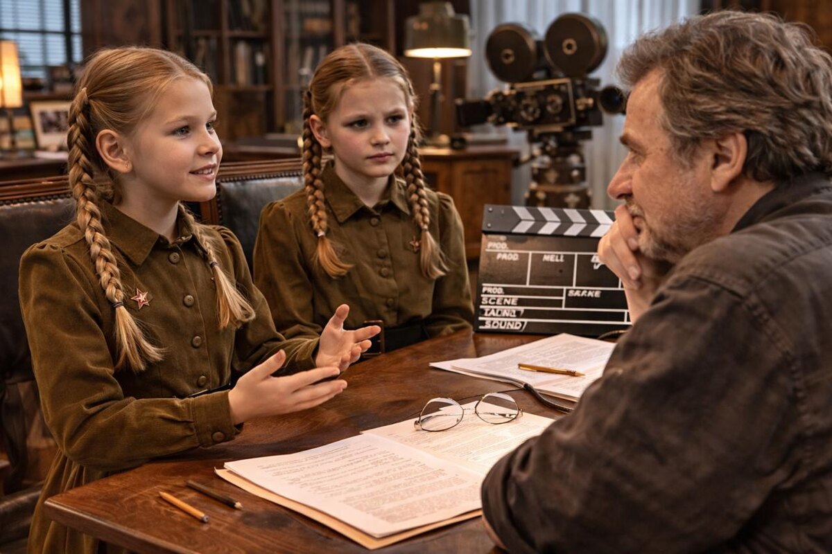 Это действительно самый простой путь сказать что-то людям. Всем людям сразу, поэтому... Лена будет сниматься в кино, поднимая непростую тему — военных семей, а вот Катя... Катя покажет Москве, какими были юные защитники столицы. Как не жалели себя, как бросались в огонь, как грудью закрывали родной город. В пятидесятых годах фильим о войне сюрпризом не был, но вот такой, настоящий — это необычно. И вот известный детский писатель готов писать сценарий. — Ну в одиннадцать к зенитке не пустят, потому что ничего сделать не сможет, — обстоятельно объясняю я. — Поэтому я подумала по первой части. Вот засыпает она тут… — ну да, я копирую ленинградцев из сна. Но тут их не было, поэтому можно, наверное. — Просыпается в июле сорок первого и спешит на помощь, а там и пулемет, если в лес не унесет. — Не унесет, — качает головой Катя. — Он на тумбе и ход у него тугой, только навести и нажать. Если вдвоем, так и вообще проще. И все же Ане придется показаться в кадре — в своей форме новой, о котор
