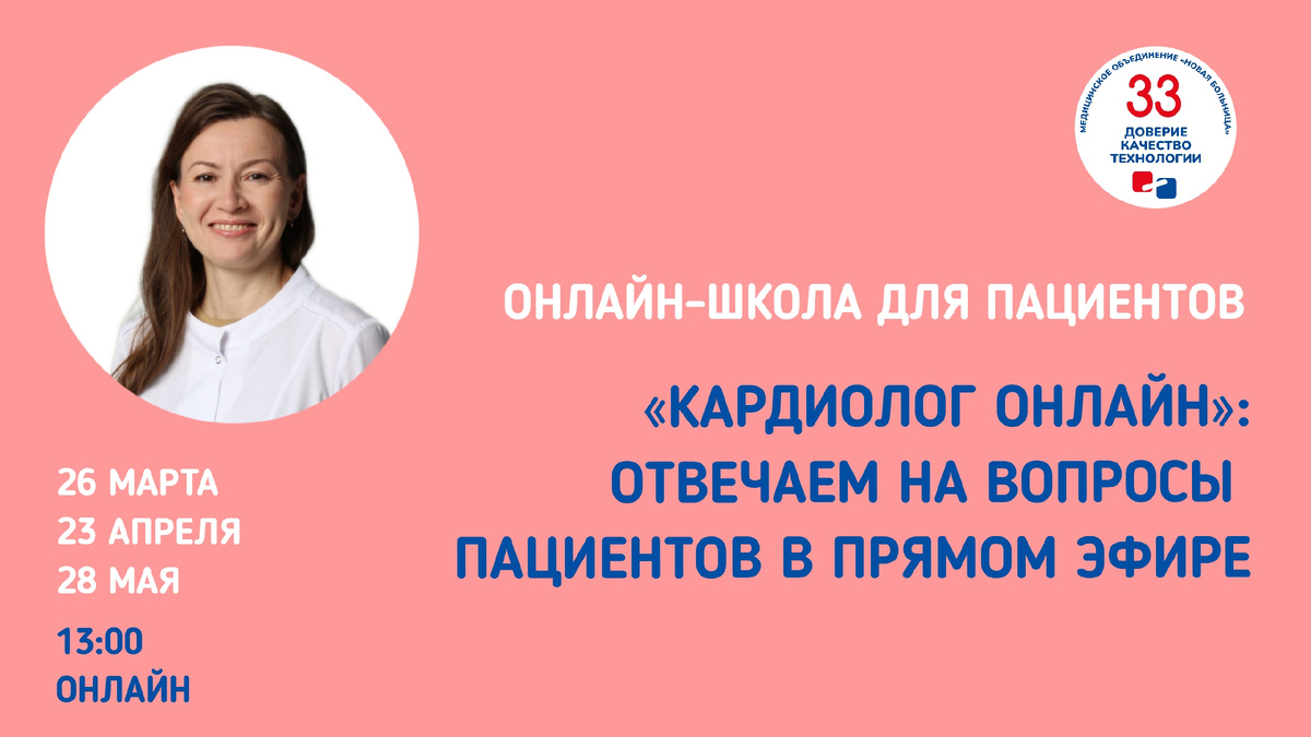 СПРОСИТЕ КАРДИОЛОГА 26 марта, 13:00 Хотели задать вопрос кардиологу? У вас есть такая возможность! Запускаем онлайн-встречи в формате «вопрос – ответ» по кардиологии «Кардиолог онлайн». Раз в месяц по четвергам в 13:00 (екб) кардиолог «Новой больницы», кандидат медицинских наук Наталья Викторовна Гуляева будет выходить в прямой эфир, чтобы ответить на вопросы пациентов кардиологического профиля. Задать вопрос можно, в том числе и в комментариях к этой статье! Спрашивайте, подключайтесь, смотрите нас в записи в соцсетях «Новой больницы» – ВКонтакте, в Дзен, Рутьюб и Ютуб. 26 марта, 13:00, ссылка для подключения и регистрации: my.mts-link.ru/j/MONOVAYA... 23 апреля, 13:00, ссылка для подключения и регистрации: my.mts-link.ru/j/MONOVAYA... 28 мая, 13:00, ссылка для подключения и регистрации: my.mts-link.ru/j/MONOVAYA...