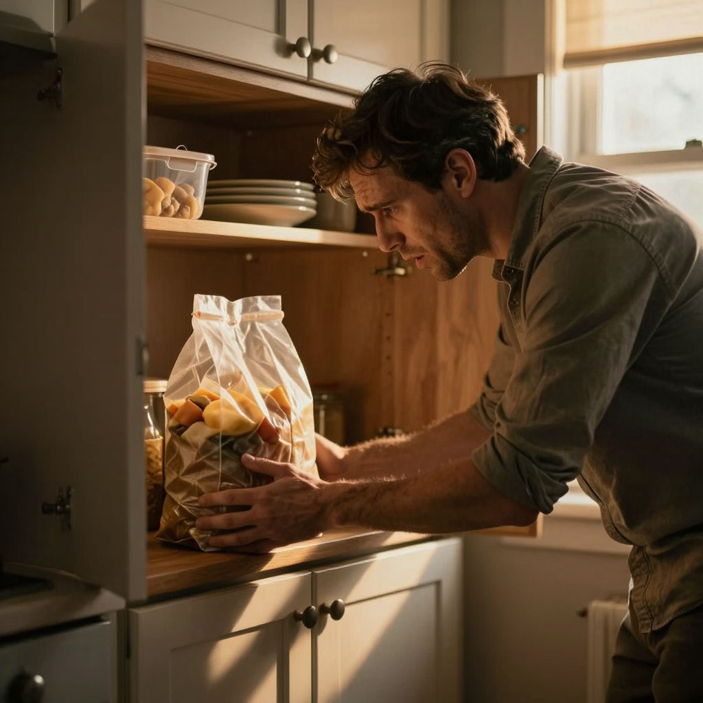 Однажды я решила провести ревизию. Пересчитала всё, записала, отметила даты. Через три дня проверила — не хватало двух шоколадных батончиков и банки тунца. Тогда я поставила скрытую камеру в кухне. Решение далось нелегко: мне было неловко шпионить за собственным мужем, но другого способа выяснить правду я не видела.