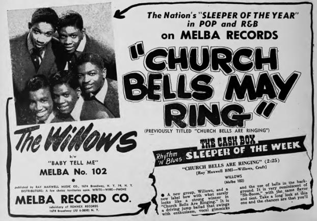 Когда в 1955 году Тони Мидлтон познакомился с Морти Крафтом, который только что ушел от своих партнеров в London Records, чтобы основать собственный лейбл Melba, у него появился шанс снова заняться музыкой. The Willows (так теперь называлась группа, без приставки «Five») предложили ему балладу под названием CHURCH BELLS MAY RING. Ее написал Тони Мидлтон по идее своей жены Бетти. Изначально песня называлась «Church Bells May Ring» (на ранних копиях была указана неверная информация), но со временем она превратилась в замечательную рок-композицию со знаменитым басом. В припеве звучит гармоничный перезвон (его исполняет еще малоизвестный Нил Седака по предложению Морти Крафта) и шаффл. Песня попала в чарты R&B 18 апреля 1956 года и продержалась в них две недели, достигнув 11-го места, но больший успех ей сопутствовал в поп-чартах: сначала она заняла 74-е место 28 марта, а затем поднялась в середину списка 100 лучших. Вскоре появились кавер-версии в исполнении The Cadets. Затем последовали версии Sunny Gale и The Diamonds, причем версия The Diamonds почти обогнала по продажам оригинал The Willows на всех основных рынках.