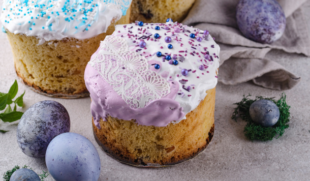 - Выпекайте куличи 50-60 минут при температуре 170 °C. Дайте остыть в форме и украсьте по своему вкусу.