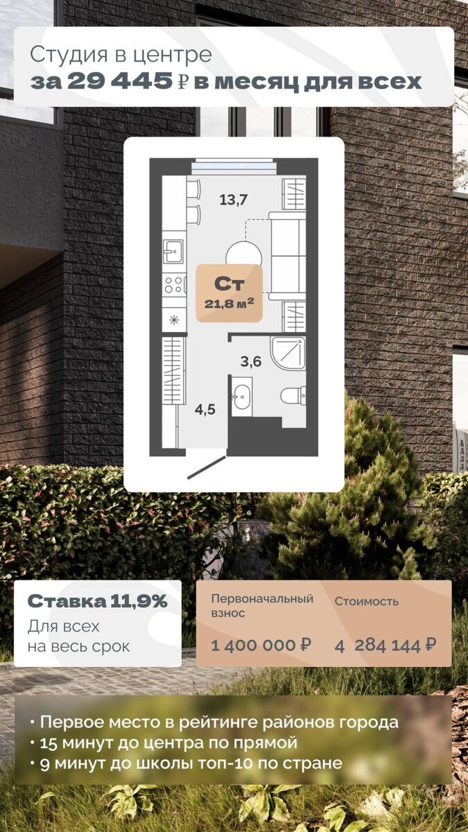 ) 📍 Центральная часть города Платеж по базовой ипотеке от 29445 р., но можно и меньше, всё зависит от первоначального взноса😉 🔔 Ключи уже через 2 месяца 🔴 Кроме студий можно посмотреть и другие квартиры. И да, подобные предложения есть и в других проектах Позвонить +7-912-920-3795 Написать @Nikita_ab