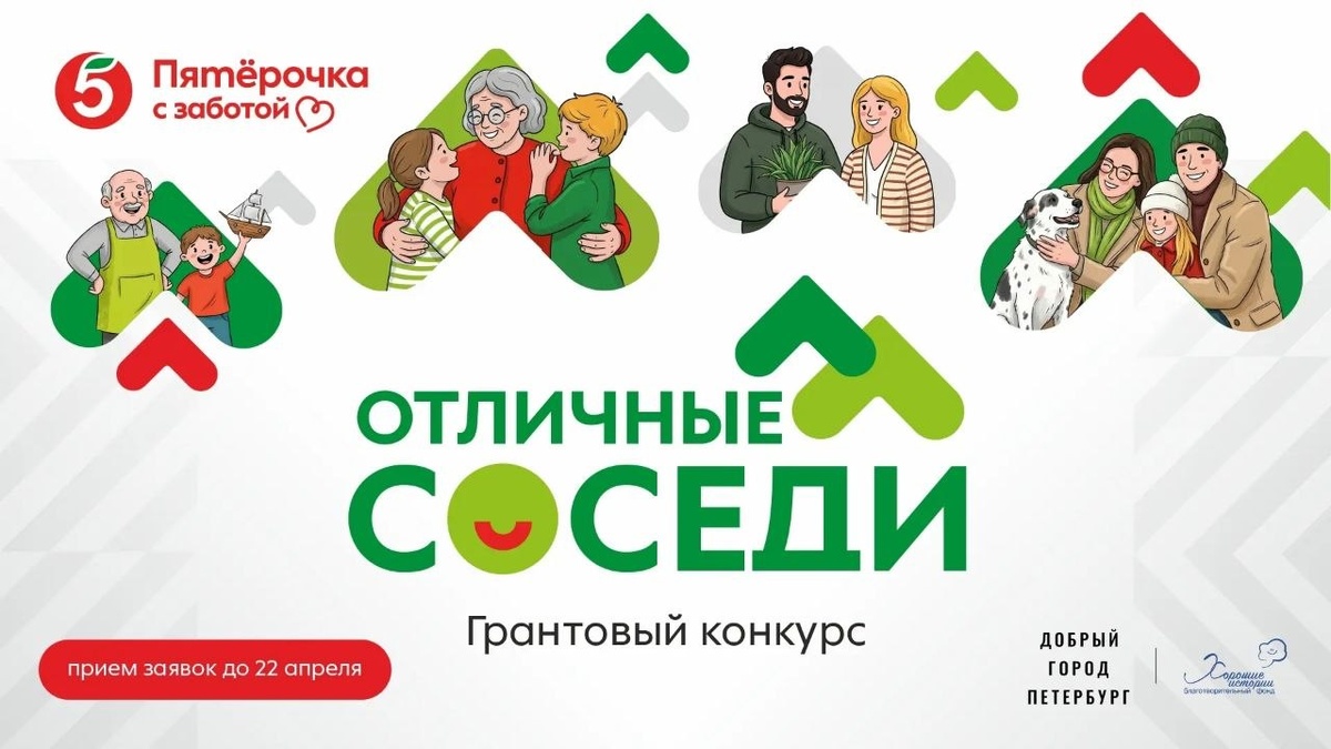 » Тема сезона — «Семья рядом»: под «семьей» понимаются не только кровные узы, но и круг людей, живущих рядом — соседей, пары, представителей разных поколений, чьи связи делают жизнь в районе теплее и безопаснее. Вы можете получить до 170 000 рублей на реализацию своего проекта по объединению соседей и развитию жизни в районе. Заявки принимаются до 22 апреля 2026 года. Основные моменты: — Конкурс проводится на территории 8 федеральных округов, в 75 регионах России; — Участники: инициативные группы, НКО, ТОСы, бюджетные учреждения и сотрудники Х5 (из всех бизнес единиц); — 4 направления: «Родное место», «Родное окружение», «Точка роста», «Мы рядом» — ВКонтакте: пошаговая инструкция с разбором каждого раздела заявки, полезные советы, важные напоминания; — GPT бот-помощник в телеграм, который помогает писать проекты; — Прямые эфиры с экспертами в ВКонтакте (31 марта, 2, 7, 9, 14 и 16 апреля в 11:00 МСК): задавайте вопросы и дорабатывайте идеи. — Заявки принимаются с 24 марта по 2