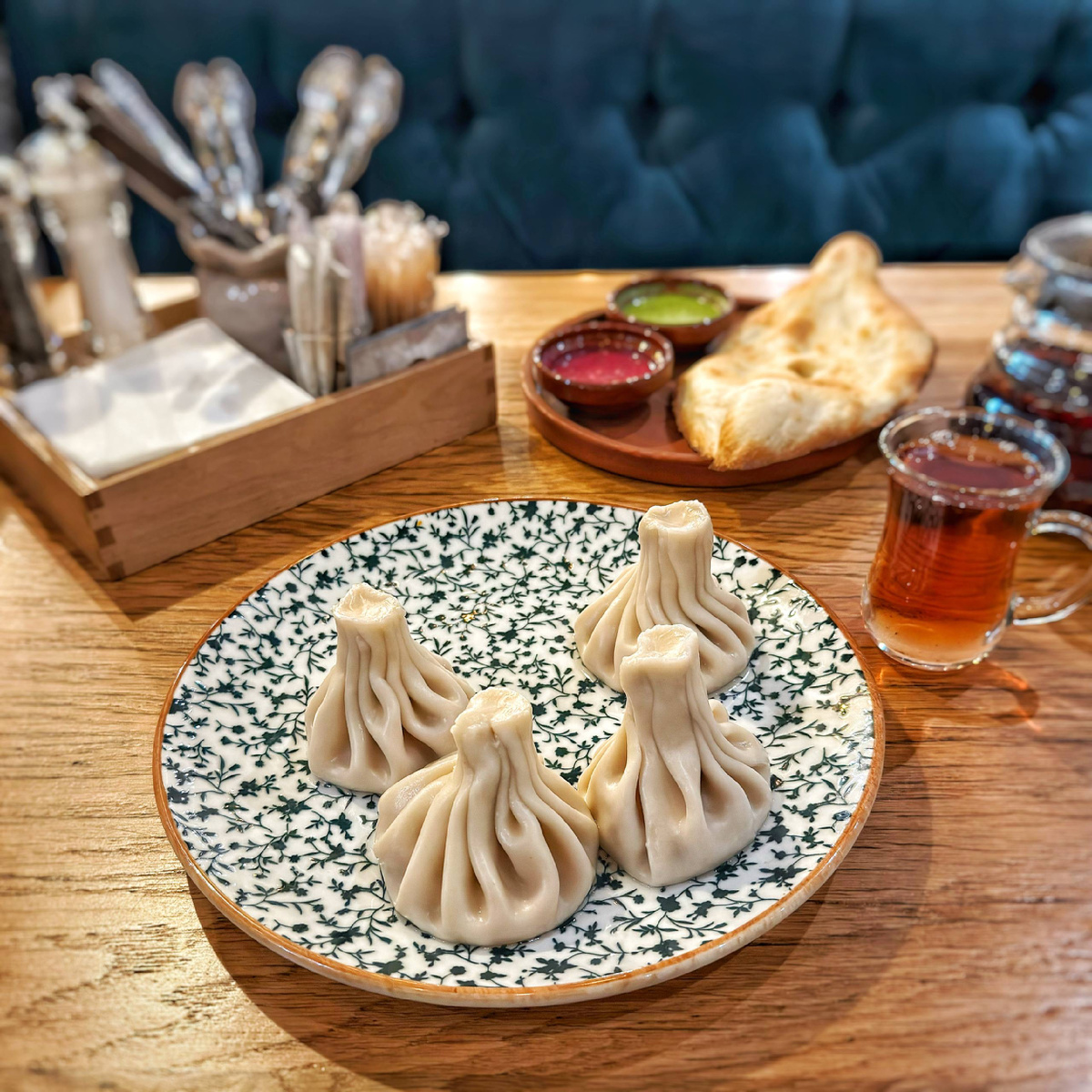 Хинкали с тыквой из постного меню грузинского ресторанчика «Хочу Пури» по 110 ₽ за штуку. Взял четыре штуки.