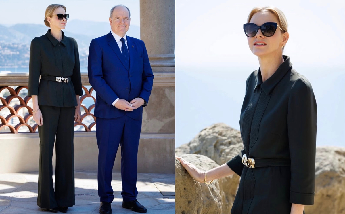 В Монако умеют устраивать красивые церемонии, но иногда всё внимание неожиданно концентрируется на одном человеке. Именно так произошло 25 марта на открытии обновлённого Сада экзотических растений. Пока гости рассматривали панораму скал и редкие растения, взгляды неизбежно возвращались к княгине Шарлен. Она появилась в образе от Elie Saab, и это выглядело так, будто вся архитектура этого места была создана именно для её выхода. Костюм сразу притягивает взгляд. Жакет выстроен почти архитектурно. Чёткая линия плеч, аккуратная талия. Но главная деталь находится в центре силуэта. Пояс украшает выразительная пряжка в виде двух слонов. В моде подобные элементы работают как ювелирный акцент. Их замечают не сразу, но именно они делают образ запоминающимся. Слон традиционно ассоциируется с силой и устойчивостью, и такая деталь на талии выглядит как тонкий намёк на характер. Брюки из плотного кади продолжают эту линию. Они вытягивают фигуру и создают ощущение идеальной вертикали. В движении кост