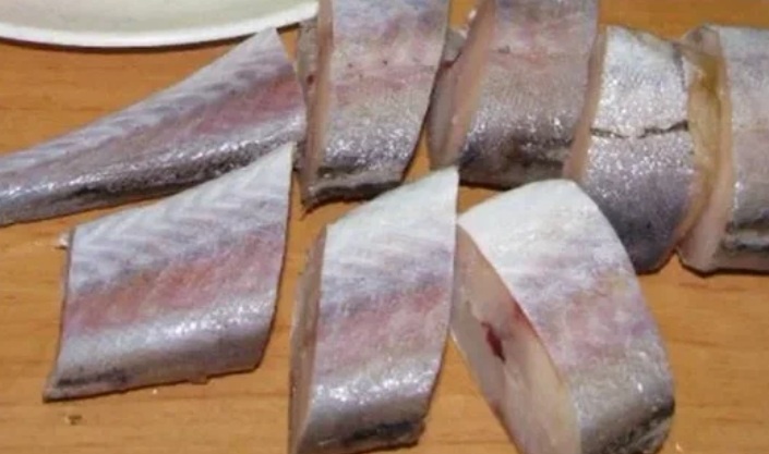 - Рыбу почистить от чешуи, внутренностей и тщательно вымыть, обсушить и разрезать на части.