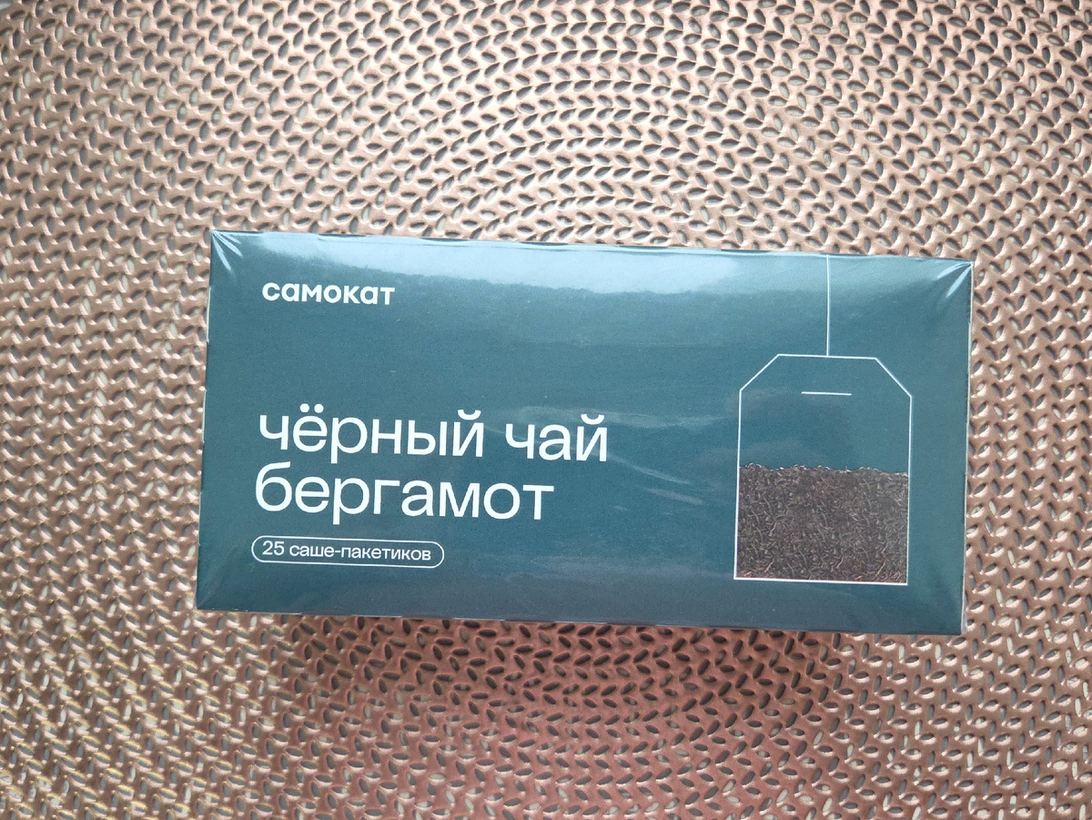 Но иногда хочется простого черного чая с ноткой приятного простого аромата. Такой аромат у меня обычно - или бергамот, или чабрец. Чай с бергамотом у меня закончился и я в Самокате купила ихнего их производства. Изготовитель: ООО Агропарк "Ясенево" Упаковка Коробочка без излишеств дизайна. Темного синего цвета, логотип и название чая. Простой текст по бокам коробки и чайный пакетик схематично на лицевой стороне. Сверху упакован чай в шуршащую пленку, хорошо защищен от влаги. Пленка просто так не снимается запечатана. Нет липкого язычка и полоски, поэтому я нещадно рвала ее ножом. Количество: 25 саше-пакетиков Подача стандартная - бумажный пакетик, в нем саше с ярлычком на веревочке. Но пакетики белого цвета и на них напечатано только одно слово - Самокат. Кстати, оригинально и малозатратно в плане печати))). Ч/б стоит дешевле, да. На ярлычках тоже всего лишь одно