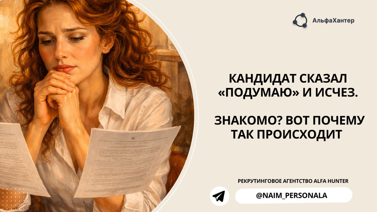 – Спасибо, подумаю. И на этом всё. Хотя на самом деле в этот момент нужно сделать ещё один шаг. Объяснить, почему кандидату стоит прийти на собеседование именно сейчас. Не просто «приходите, если интересно».