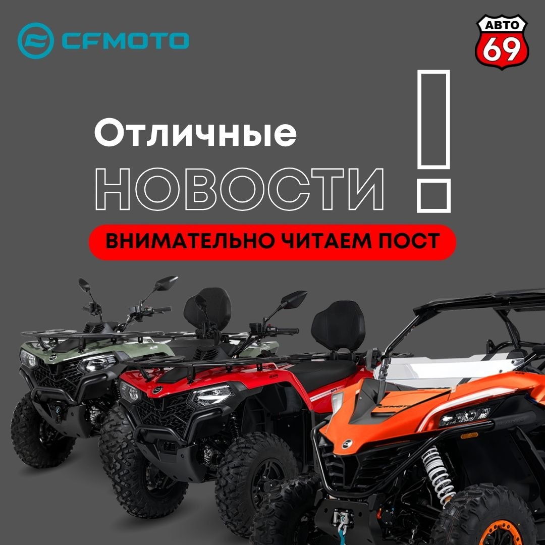 *🔥🔥🔥 💥 Квадроцикл CFMOTO, модель CFORCE 400L EPS, цена от 803 165 руб.* 💥 Квадроцикл CFMOTO, модель CFORCE 500 Basic, цена от 803 165 руб.* 💥 Квадроцикл CFMOTO, модель CFORCE 500 EPS, цена от 905 165 руб.* 💥 Багги CFMOTO, модель ZFORCE 1000 Sport R EPS, цена от 2 337 415 руб.* 💥 Багги CFMOTO, модель ZFORCE 950 Sport-4 EPS, цена от 2 549 915 руб.* CFMOTO - техника для тех, кто не привык искать легких путей, а предпочитает создавать свои. Готовы сменить городскую суету на драйв бездорожья❓ Для получения информации свяжитесь с нами удобным для вас способом. 📍Приезжайте - г. Тверь, Московское шоссе, д. 20 В 📞 Звоните +7 (4822) 63-33-00 Поторопитесь, чтобы ваш CFMOTO не попал в руки другого владельца☝🏻 *Специальная цена. Ограниченное количество.