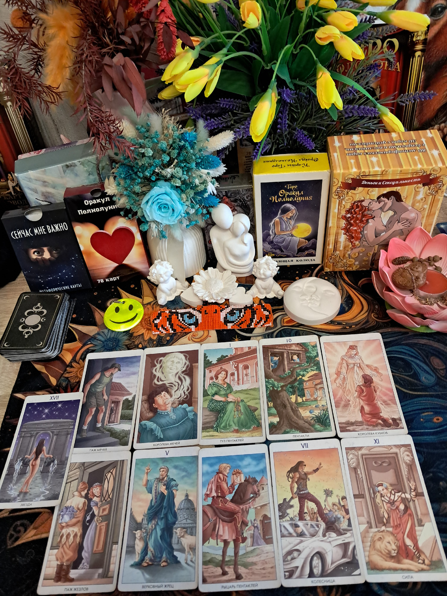 · 10 Пентаклей – карта семейного благополучия, недвижимости, устойчивого наследия. Возможно, вы станете обладателем собственного жилья, получите наследство или заключите важный контракт, который обеспечит спокойствие на годы вперёд.