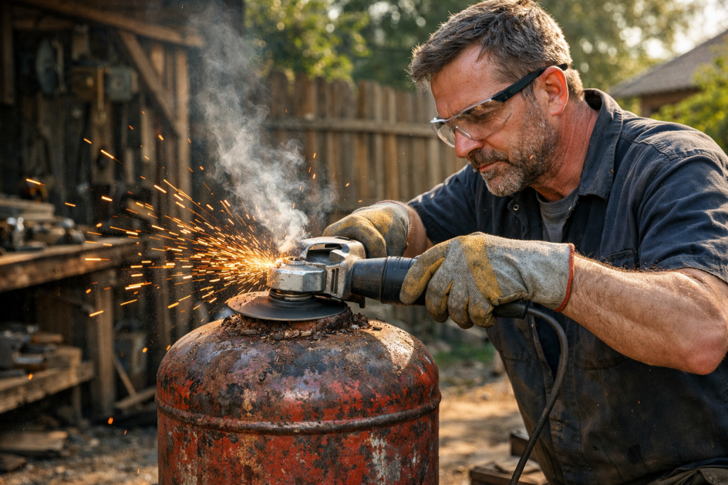 Это самый ответственный этап. Пренебрежение им чревато не просто неудачей, а реальной опасностью взрыва. Остатки сжиженного газа в замкнутом объеме при резке болгаркой мгновенно превращаются в бомбу. Следуйте инструкции.