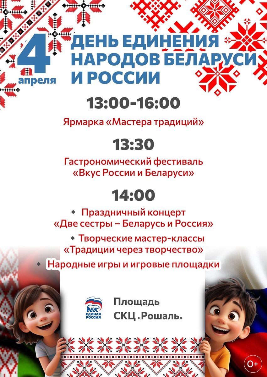💖Дорогие друзья! Приглашаем вас в следующую субботу, 4 апреля, на площадь СКЦ «Рошаль» на празднование Дня единения народов Беларуси и