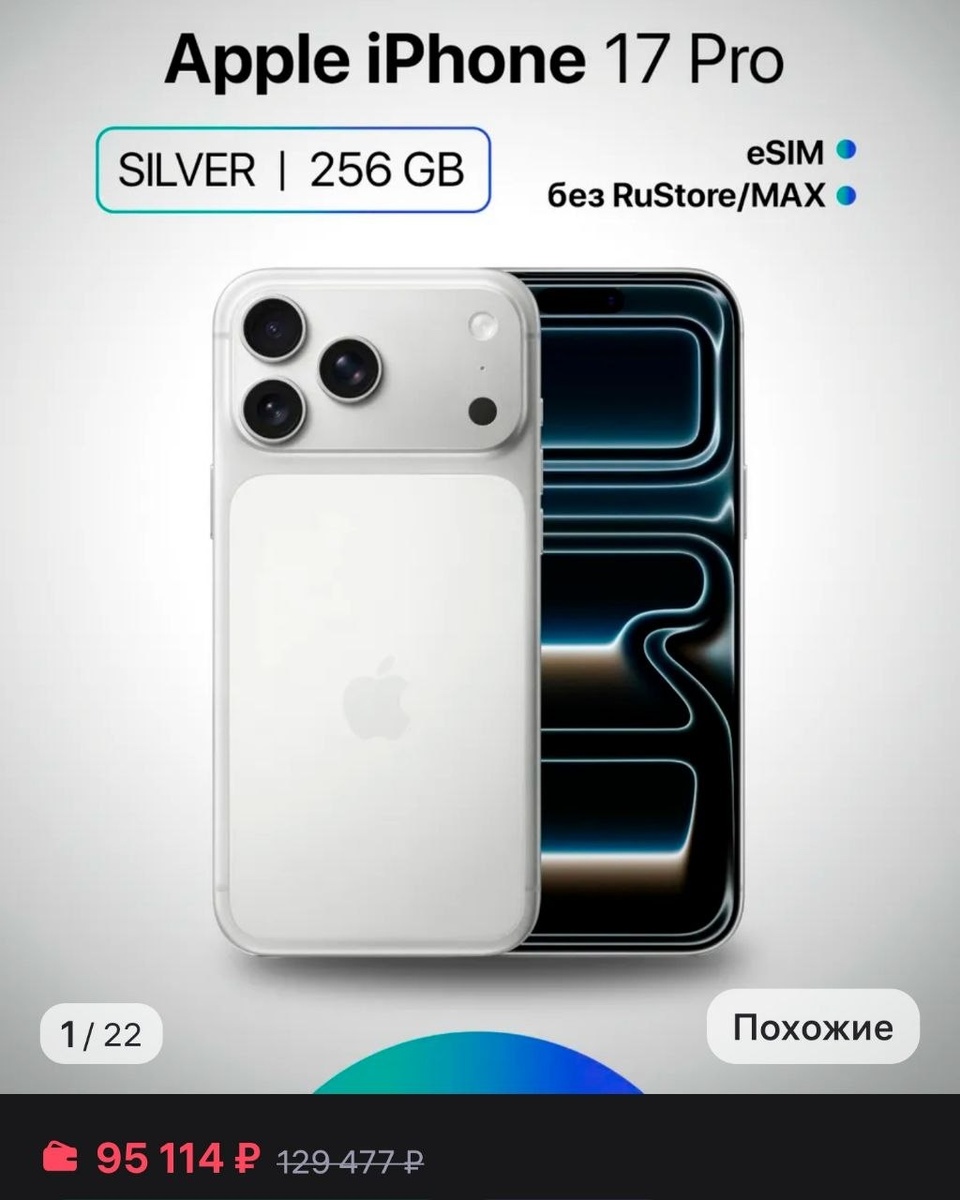 π’Π‘ΠΌΠ°ΡΡΡΠΎΠ½ iPhone 17 Pro 256ΠΠ Dual: eSim ΡΠ΅ΡΠ΅Π±ΡΠΈΡΡΡΠΉ Apple - 95114Ρ