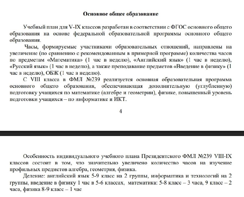 Учебный план ФМЛ №239 (выписка про экзамены и тесты для перехода в следующий класс
