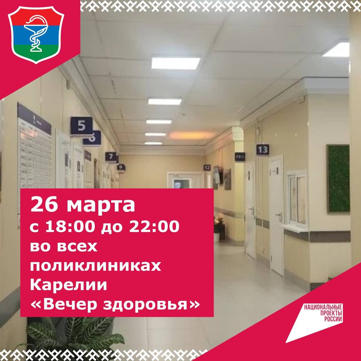 ☝️Напоминаем, что сегодня с 18:00 до 22:00 все поликлиники Карелии проводят «Вечер здоровья