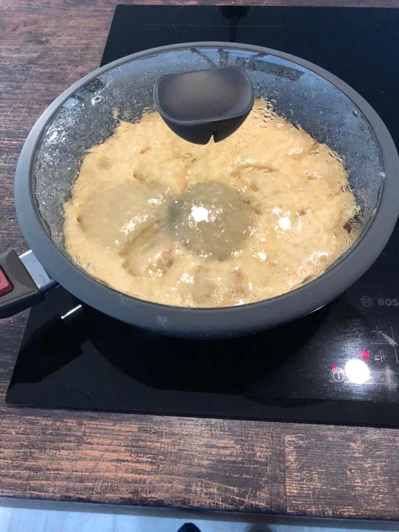 1. Карамелизуем яблоки. В сковороду (толстостенную) вылить воду, добавить сливочное масло, половину сахара и ванильный сахар. Нагреть до полного растворения сахара, постоянно помешивая. Добавить очищенные и нарезанные крупными кусками яблоки. Перемешать и оставить на медленном огне тушиться. 2. Подготавливаем тесто. Пока яблоки тушатся, замешиваем тесто. Желательно, чтобы все продукты для теста были комнатной температуры. Для этого смешаем два яйца, оставшийся сахар, молоко, муку и разрыхлитель. Затем добавляем растительное масло и ещё раз хорошо перемешиваем. 3. Формируем и, непосредственно, готовим пирог. К яблокам добавляем корицу (причем желательно это сделать не сразу при выкладывании яблок на сковороду, а прямо перед заливанием теста, так аромат корицы будет лучше звучать), размешаем и выливаем сверху тесто. Разравниваем тесто так, чтобы накрыть тестом все яблоки. Накрываем плотно крышкой и оставляем на медленном огне до готовности. Обычно требуется 35-45 мин., всё зависит Вашей
