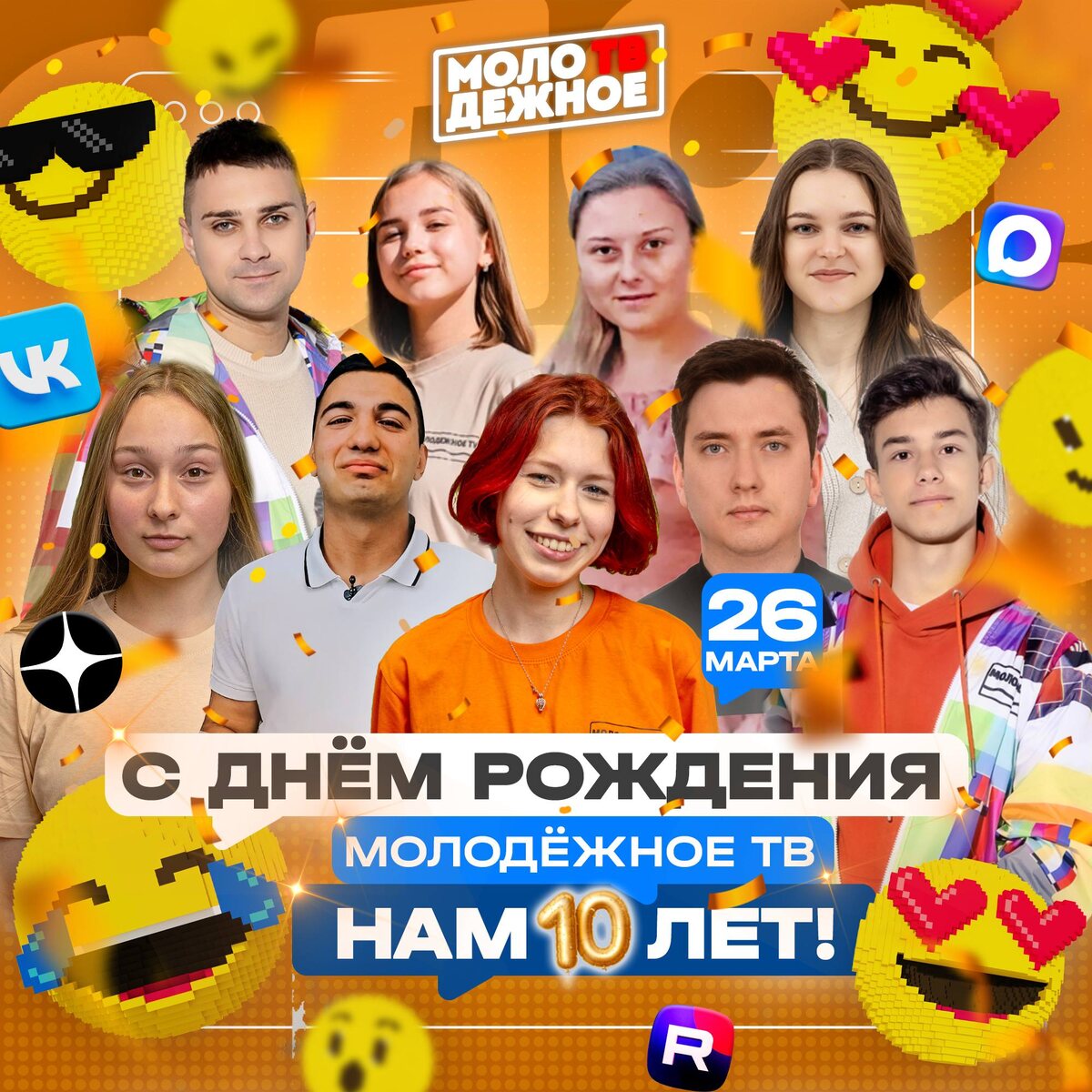 🎉Друзья, с праздником всех нас с вами! Сегодня команде МОЛОДEЖНОЕ TВ исполняется 1️⃣0️⃣лет