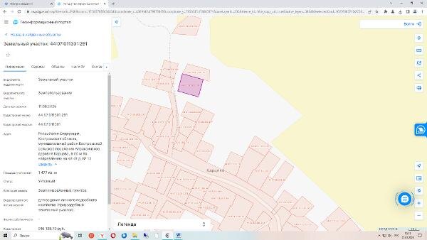 Название: Земельный участок с кадастровым номером 44:07:011301:291, общей площадью 1477 кв.м расположенного по адресу: Российская Федерация