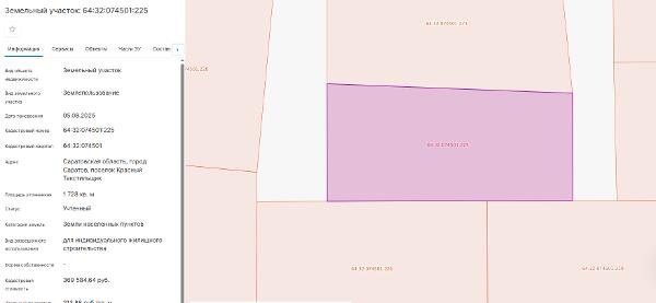м с кадастровым номером 64:32:074501:225, описание местоположения: г. Саратов, Заводской район Канал: Госземля Саратовская область Область: обл Саратовская Район: г.о. город Саратов Населенный пункт: г Саратов Локация: Смотреть на карте ВРИ: Для индивидуального жилищного строительства Кадастровый номер: 64:32:074501:225 Кадастровая стоимость: - Вид сделки: Продажа Площадь: 1728 м² Начальная цена: - руб. Дата завершения: 24.04.2026 Подробнее: ГИС ТОРГИ #госземля #земляотгосударства #земля #земельныйучасток #земельныеторги #торги #аукцион #продажаземли #продажа #саратовскаяобласть