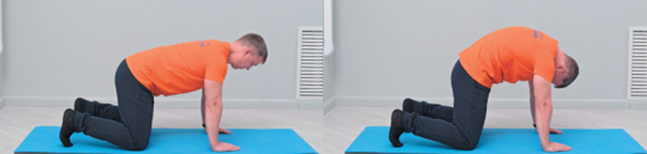 Что такое правильная осанка? Как она выглядит? Классический вариант правильной осанки в вертикальном положении, то есть, стоя: голова держится ровно, макушка направлена в потолок, подбородок смотрит вперед, плечи на одной линии (не должно быть перекоса ни вверх, ни справа, ни слева, должны быть одна плоскость). Плечи чуть-чуть развернуты назад и слегка опущены, свободно, расслабленно висят руки. Грудь подается чуть вперед, ноги в тазобедренных и коленных суставах прямые, живот подтянут. Упражнение 1. Кошечка Исходное положение: Опускаемся на четвереньки, колени стоят на ширине плеч, носочки в упоре, руки ставим под плечами, тоже на ширине плеч. Техника выполнения: 1. Округляем спину вверх, живот втягиваем, ягодицы опускаем, голову опускаем, подбородок прижимаем к груди, делаем выдох. 2. Медленно прогибаем спину, ягодицы поднимаем вверх, затылок чуть приподнимаем, но голову сильно не запрокидываем. Делаем вдох. Движения медленные, с акцентом в конечной точке. Упражнение выполняем 10 раз
