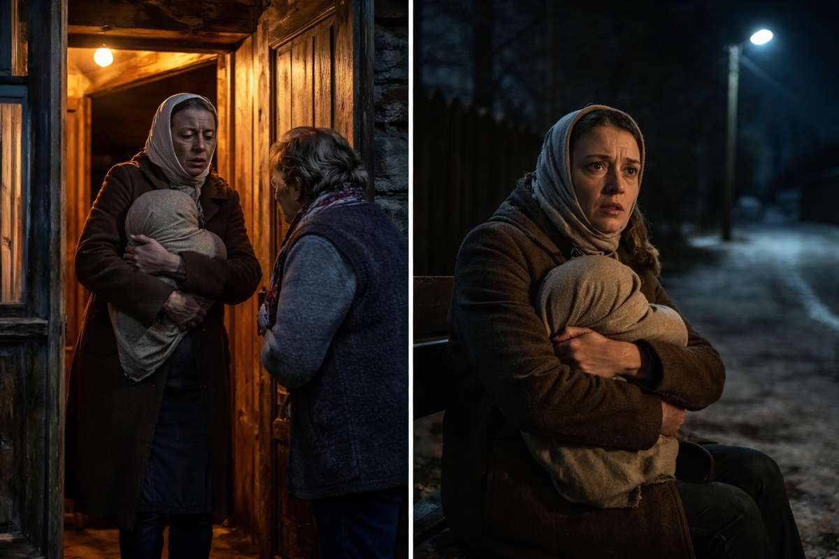Когда на пороге моего дома поздним вечером появилась молодая женщина с ребёнком на руках, я сначала даже не узнала её. Платок съехал набок, пальто было тонким не по погоде, губы посинели от холода, а глаза… глаза были такими, будто она уже не плакала, потому что слёз больше не осталось. Она стояла молча, прижимая к себе свёрток, и только когда я подошла ближе, тихо сказала: