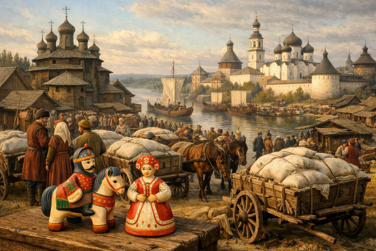 Когда в восемнадцатом веке монополия Каргополя начала сходить на нет, открылись более дешёвые месторождения, город не зачах. Он переключился на игрушки. Те самые глиняные полканы и барыни, которые теперь визитная карточка. Но первые мастера лепили их не для забавы, а как обереги. А глину брали ту же самую, что когда-то использовали для амбаров. Так та самая тайна осталась в городе навсегда. В прямом и переносном смысле.