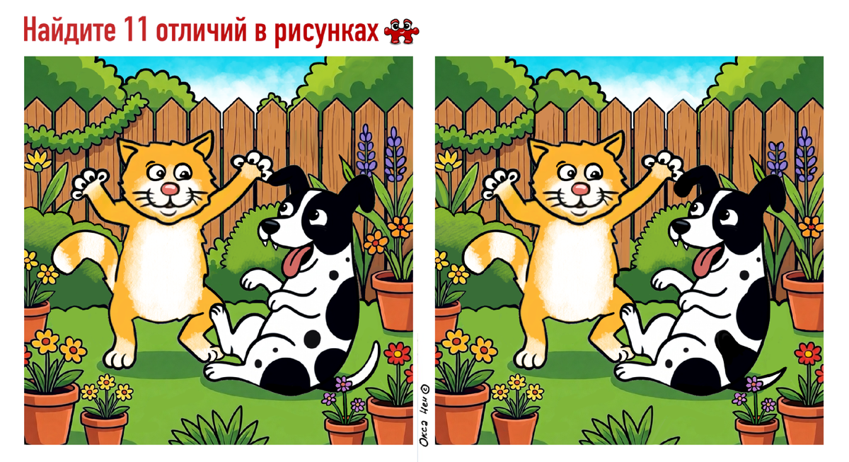 Всем привет! Сегодня у меня получился веселый теплый сюжет. На лужайке во дворе Кеша играет с щенком. Картинка пестрая, поэтому поиск отличий будет не простым. Пусть всё найдется! Горизонтальный тест: Вертикальный тест: Спасибо, что благодарите автора кнопочкой «Поддержать». Дзен предлагает авторам переходить на платные подписки, но мой канал всегда будет бесплатным, а поддержка по желанию. Спасибо, что мотивируете нас с Кешей :) Ответ: