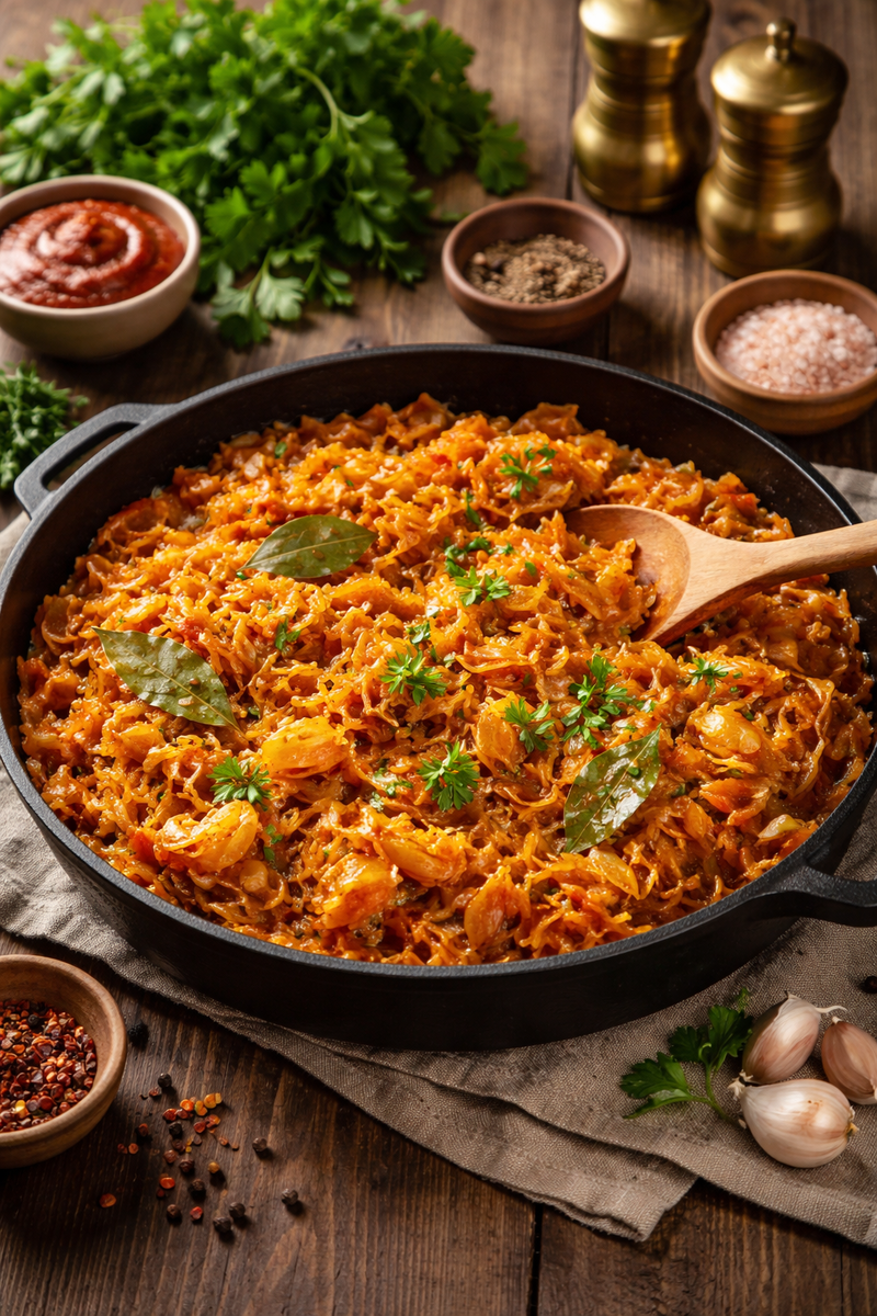 Разница в одном действии, которое почти никто не делает. Подпишитесь на Telegram канал «Вкус мира», здесь объясняют еду так, что простые блюда начинают получаться с первого раза. Почему у одних вкусно, а у других нет Есть момент, который отличает домашнюю капусту от той, что подают в хороших заведениях. Её не начинают тушить. Её сначала доводят до вкуса. Если пропустить этот этап, вы получите варёную капусту. Если сделать правильно, появится аромат, сладость и глубина. Сохраните статью и подпишитесь на Telegram канал «Вкус мира», дальше будет ключ к результату. Что нужно взять Капуста белокочанная 900 г