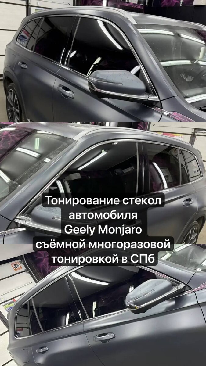 Тонирование стекол автомобиля Geely Monjaro съёмной многоразовой тонировкой в СПб