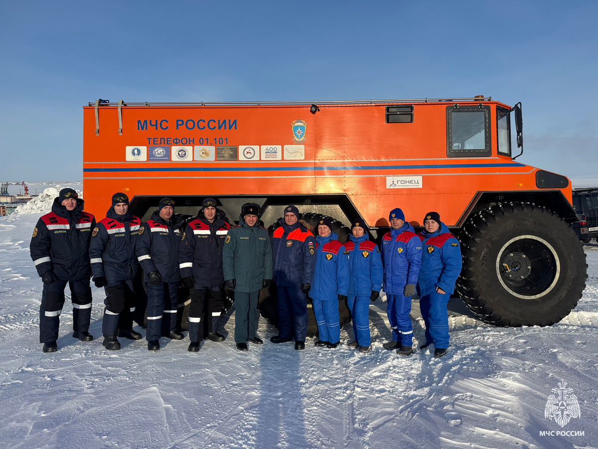 В Чукотском автономном округе завершилась межведомственная экспедиция. За пять дней сотрудники Арктического комплексного аварийно-спасательного центра МЧС России и Росгвардии на вездеходе «Бурлак» и другой технике преодолели более 780 километров. Маршрут проходил по суровой заснеженной и ледяной трассе Певек — Рыткучи — Кепервеем — Билибино в условиях полярной ночи и экстремально низких температур. На 118-м километре пути спасатели помогли вытянуть из снега автомобиль УАЗ. Водитель несколько часов безуспешно пытался самостоятельно выбраться из снежного плена. «Бурлак» с помощью троса легко справился с этой задачей. Во время экспедиции были отработаны различные сценарии поисково-спасательных работ с применением «Бурлака» и беспилотных авиационных систем, проведены пожарно-тактические учения по тушению пожара на складе топлива. В населенных пунктах для школьников проводили открытые уроки по безопасности жизнедеятельности, рассказывали о правилах поведения при различных чрезвычайных ситуа