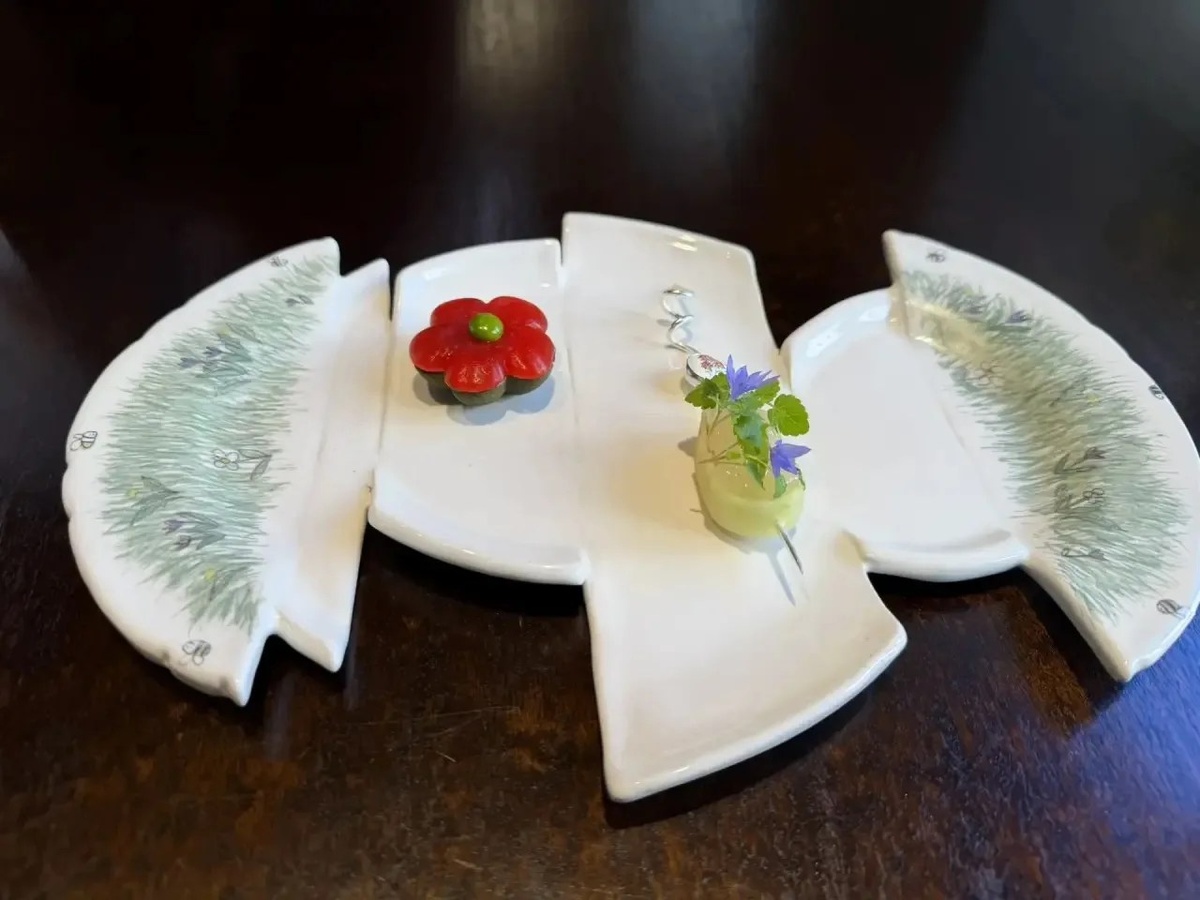 В петербургском Bourgeois Bohemians вновь листают гастрономический альбом — на этот раз не просто добавляя новую главу, а меняя сам способ повествования. XVI сет BoBo — не набор блюд в привычном понимании, а попытка выстроить диалог между кухней и иллюстрацией, где картинка и вкус существуют на равных правах. Борис Романов делится для Antenna Daily своими эмоциями от сета. Творческий тандем братьев Гребенщиковых, давно работающих на стыке ремесла и искусства, в новом сете обращается к петербургским иллюстраторам. Их участие не ограничивается декоративной функцией: рисунок проникает в саму ткань гастрономического опыта — от формы посуды до композиции блюда. Сет сопровождается небольшим буклетом, напоминающим кураторскую справку: редкий и уместный жест, позволяющий замедлиться и прочитать контекст между подачами. Начало — деликатное и почти акварельное. Корзинка из водорослей с лососем холодного копчения, грейпфрутом и маринованным ревенем выстроена на тонком балансе горечи и сладости, т