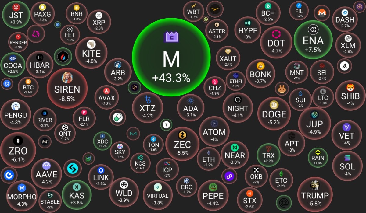 🗓 26.03.2026 09:30 по Москве. 🔗 Посмотреть на сайте 📈 Лидеры роста (из ТОП-100): 🟢 MemeCore (M): $2.4539 (+43.3%) 🟢 Ethena (ENA): $0.1016 (+7.5%) 🟢 Kaspa (KAS): $0.0380 (+3.8%) 📉 Лидеры падения (из ТОП-100): 🔴 Siren (SIREN): $1.9579 (-8.5%) 🔴 LayerZero (ZRO): $2.0837 (-6.1%) 🔴 Official Trump (TRUMP): $3.1414 (-5.8%) 🔍 Основные метрики: 🔴 Общая капитализация: $2399.72 млрд (-1.61%) 🔴 Общий объем торгов: $86.62 млрд (-10.32%) 🔴 Доминация Bitcoin: 58.34% (-0.05%) 🔴 Доминация Ethereum: 10.67% (-0.08%) 🔴 Индекс страха и жадности: 10 / 100: ЭКСТРЕМАЛЬНЫЙ СТРАХ (-4) ⚪️ Индекс Альтсезона: 48 / 100: НЕ АЛЬТКОИН-СЕЗОН (0) 📖 Интересно почитать: 👉 Лучшие криптобиржи для пассивного дохода в 2025 году 😻 Наши сервисы и бонусы: ⛽ EthGasPrice.org - трекер стоимости газа для сети Ethereum 📈 Bitget - Скидка на торговую комиссию 20% + бонус до 200$